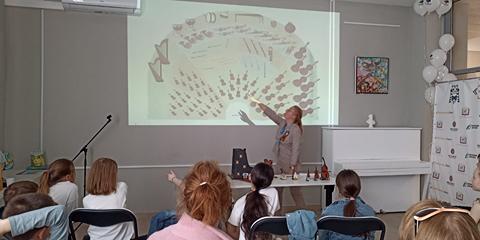 После этого детей познакомят с историей струнных инструментов, от древнейших египетских арф и греческих лир до оркестровых контрабасов и виолончелей. Им дадут рассмотреть миниатюрные модели струнных инструментов и включат запись их звучания.